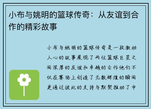 在当今社会,体育不仅是身体的较量,更是精神的碰撞。霍启刚与姚明这两位杰出的运动员,在一次重要的体育赛事中握手的瞬间,深刻展现了体育精神与友谊之间深厚的纽带。这一简单却意义非凡的动作,不仅体现了他们对彼此成就的认可,也代表了中国体育界团结奋进、共同发展的美好愿景。通过分析这一握手瞬间,我们可以从四个方面深入探讨:首先,两位运动员各自所代表的体育精神;其次,友谊在竞技场上的重要性;第三,公众人物如何影...