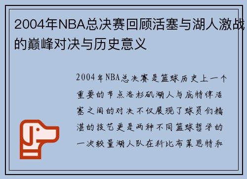 在这个激动人心的季后赛时刻,勇士与快船的对决无疑成为了篮球迷们热议的话题。两支球队在场上展现出的高水平竞技状态和精彩瞬间,令观众们大呼过瘾。本篇文章将从四个方面详细阐述这场赛事的精彩之处,包括双方阵容分析、比赛关键时刻、球员表现亮点以及战术策略解析,帮助读者更深入地理解这场篮球盛宴。同时,我们还将通过录像回放的方式,让每位球迷都能充分体验到这一令人难忘的比赛过程。无论是技术动作还是战术布置,这场对...