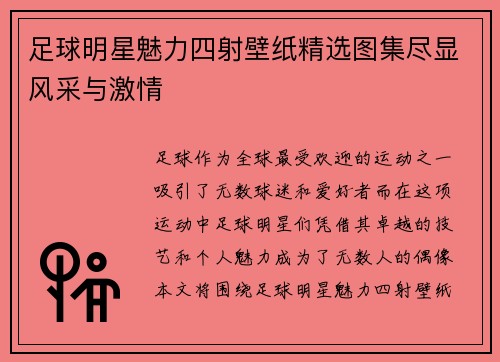 在全球足球运动的舞台上,众多球星以其出色的技艺和迷人的外表吸引了无数球迷的目光。他们不仅是赛场上的英雄,更是时尚界的风云人物。颜值与实力并存的足球明星,不仅为球队带来了胜利,也为年轻人树立了崇拜的偶像。本文将从四个方面对这些既有才华又具魅力的足球帅哥进行盘点,分别探讨他们在个人魅力、职业成就、社交媒体影响力以及时尚表现等方面的独特之处。通过对这些优秀球员的深入分析,我们希望能够更全面地理解他们为何...